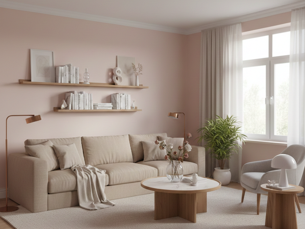 هو لون ناعم ودافئ يمزج بين درجات الوردي الترابية ليمنح الجدران لمسة رومانسية هادئة ومريحة للعين.