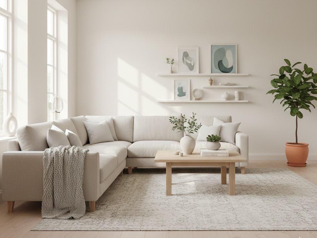 يعزز الشعور بالهدوء، يبرز جمال الباركيه الفاتح، يتماشى مع الأثاث الأبيض والخشبي، ويمنح المكان طابعًا عصريًا أنيقًا.