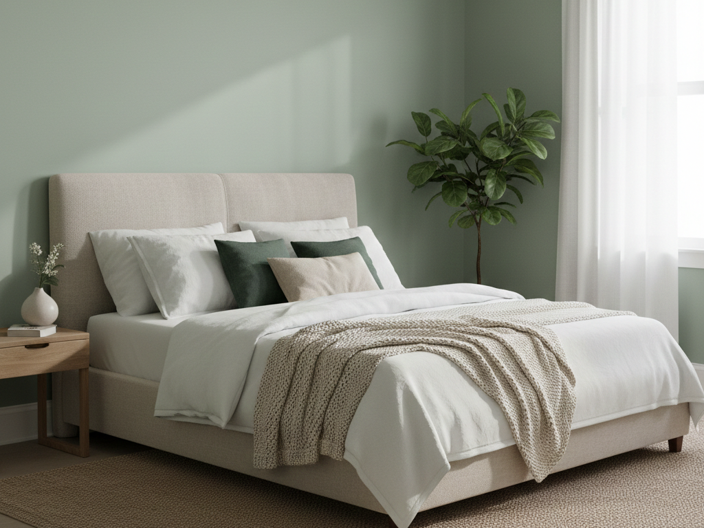 يعزز الشعور بالهدوء، مريح للعين، ينسجم مع الألوان الخشبية والبيج والأبيض، ويمنح المكان لمسة عصرية طبيعية.