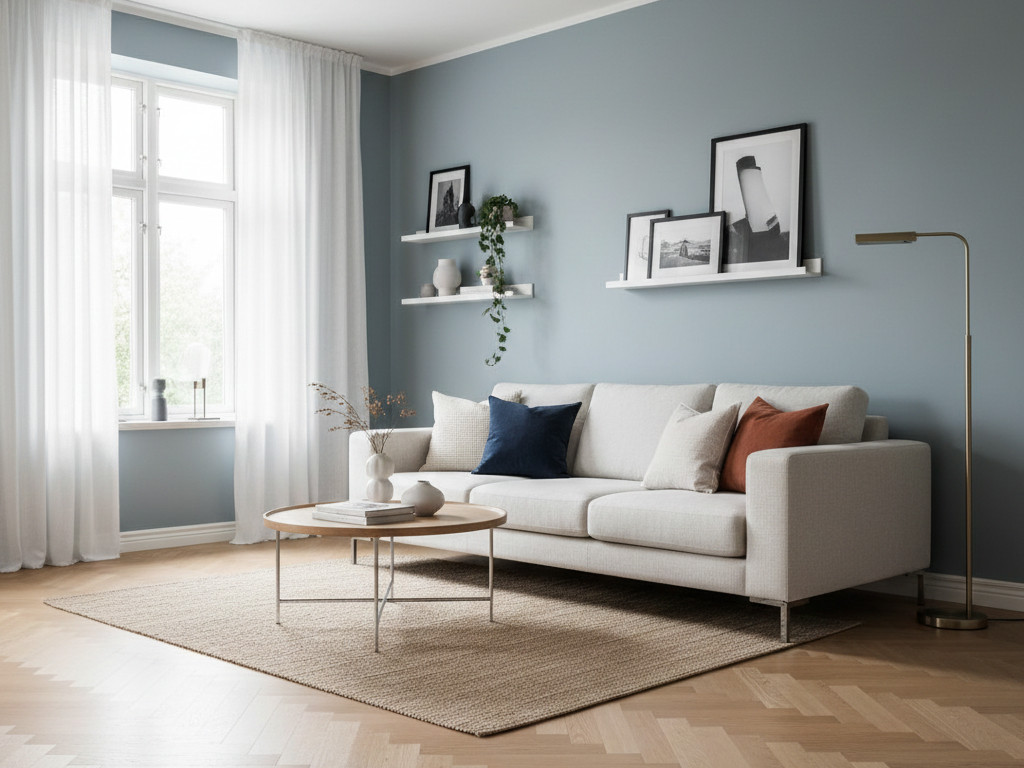 قد يبدو باهتًا أو بارداً إذا استُخدم بمساحات كبيرة دون إضاءة كافية أو لمسات ألوان دافئة.