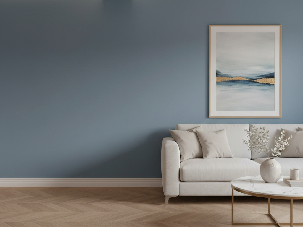 هو لون راقٍ يجمع بين هدوء الأزرق ونعومة الرمادي، ليمنح الجدران إحساسًا بالفخامة والسكينة في آنٍ واحد.