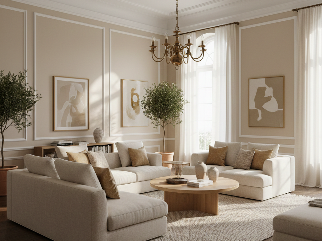 هو درجة دافئة تجمع بين البيج والكافيه، تمنح الجدران إحساسًا بالفخامة والدفء، وتضفي جوًا هادئًا وأنيقًا على المكان.